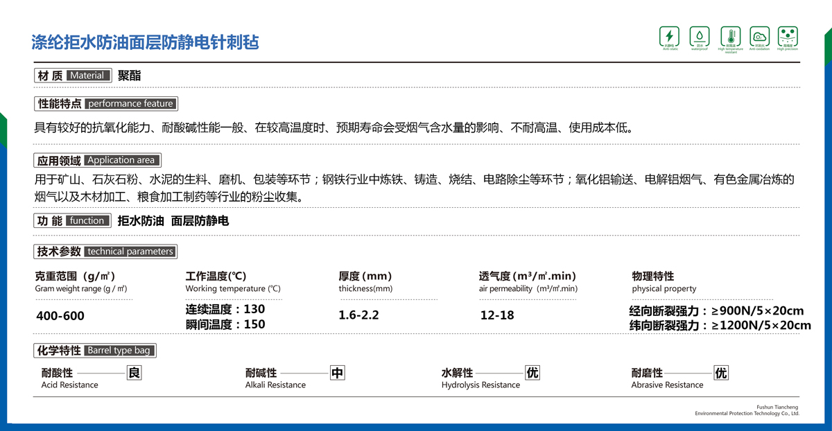 滌綸拒水防油面層防靜電針刺氈